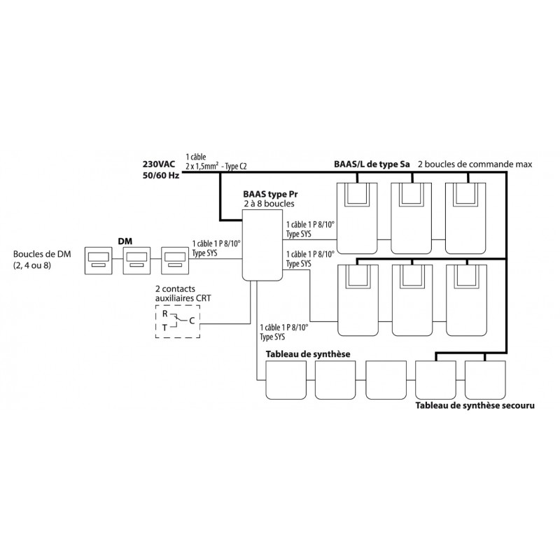 Le tableau de synthèse secouru TT2B-TSS, de la gamme TESLA, est spécialement conçu pour les systèmes BAAS de type PR dans les établissements recevant du public. Il permet de centraliser et de visualiser clairement l’état du système : présence d’alimentation, défaut de charge de batterie, état d’alarme et zones en alerte. Sa conception robuste en ABS blanc ignifugé (classe V0), associée à une autonomie de plus de 12 heures en veille et 5 minutes en alarme, garantit une sécurité optimale en toutes circonstances.