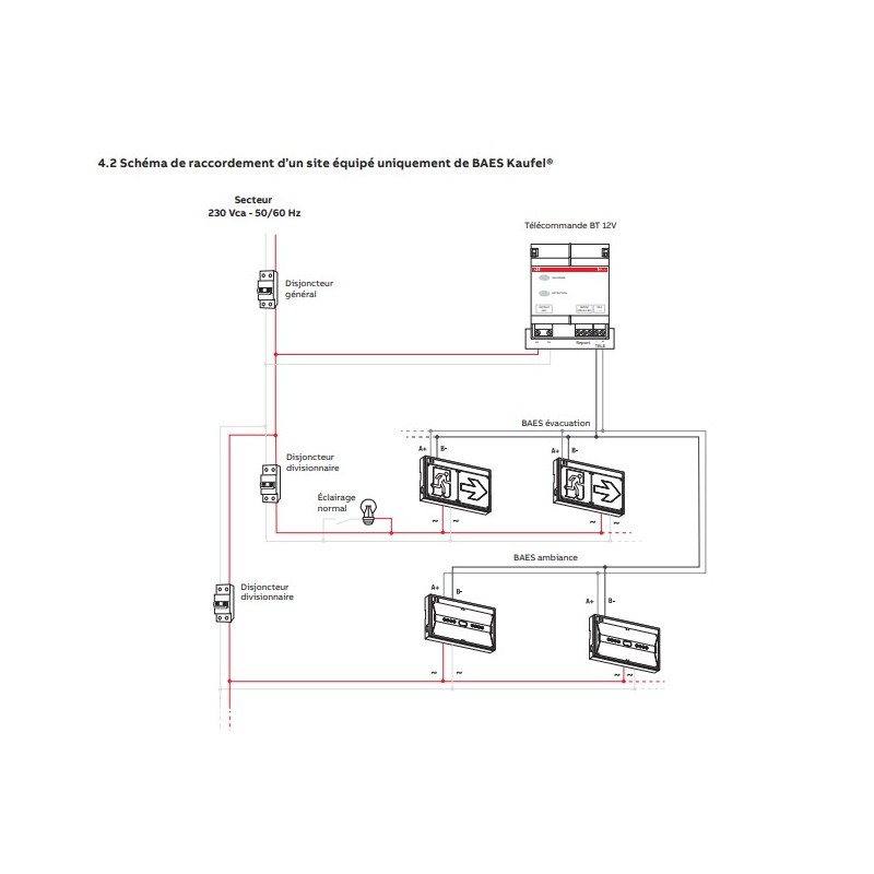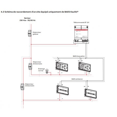 Télécommande BT 12V réf. 621201 Kaufel / ABB. Compatible Std et SATI, elle gère jusqu’à 500 blocs et permet aussi l’arrêt du système dans les alarmes de type 3. Compacte (82x70x70 mm), certifiée CE. Possibilité de maintenance par nos services.